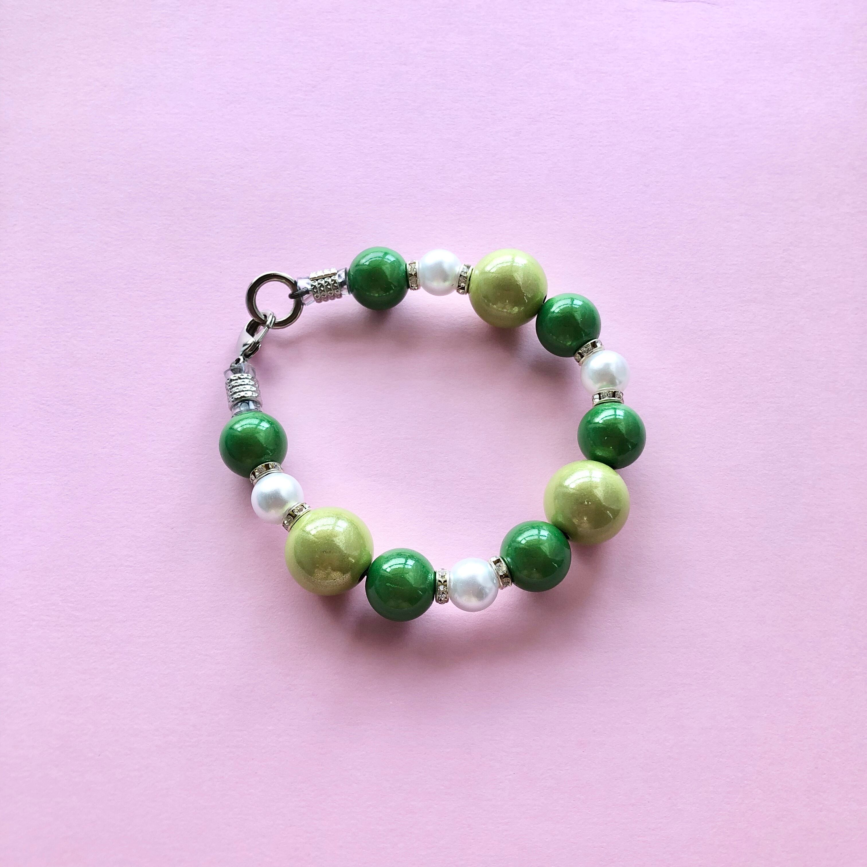 メタリックに輝くビーズが、首元をぐんと華やかに盛り上げてくれます。