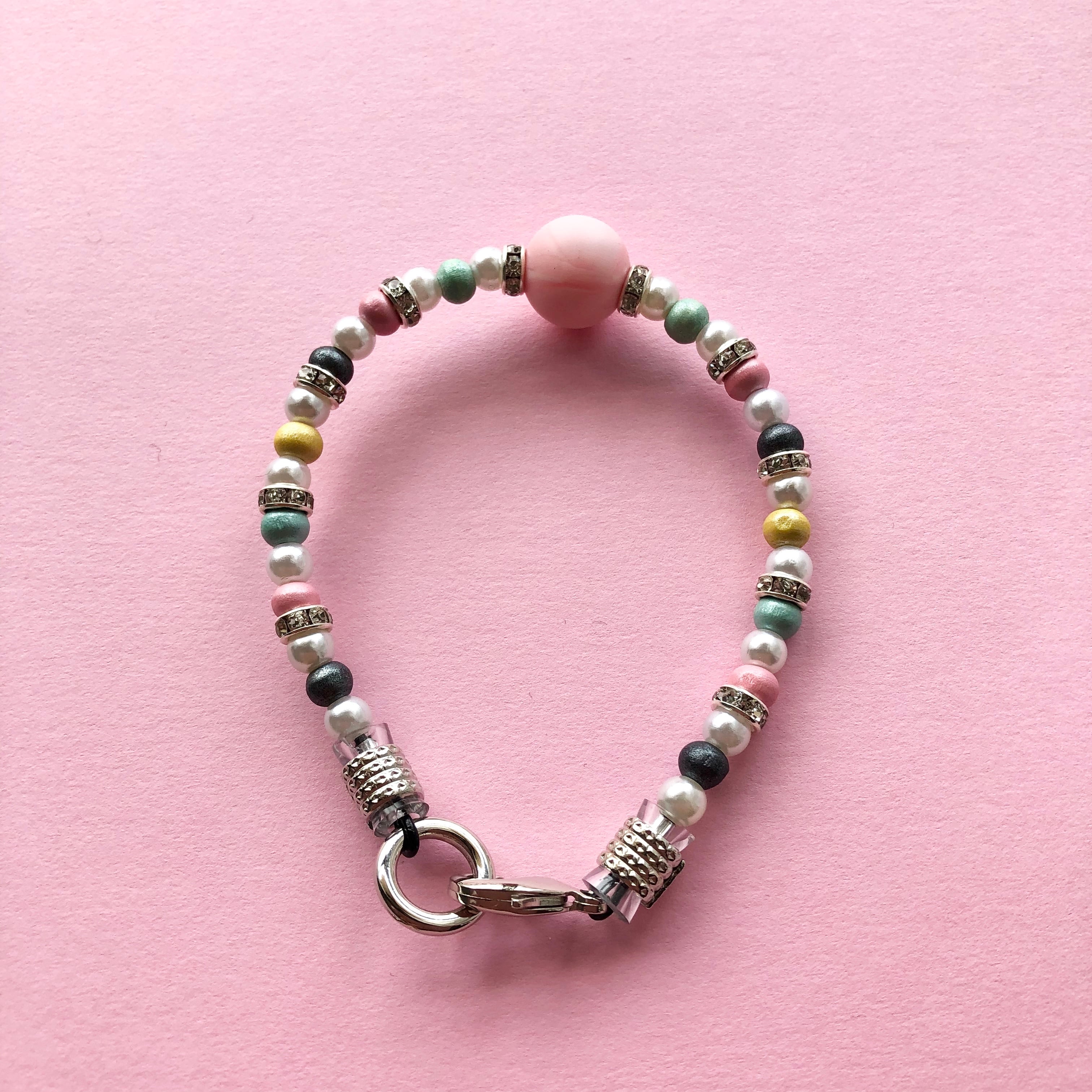 センターのマットな発色のシリコンビーズが、首元をぐんと華やかに盛り上げてくれます。