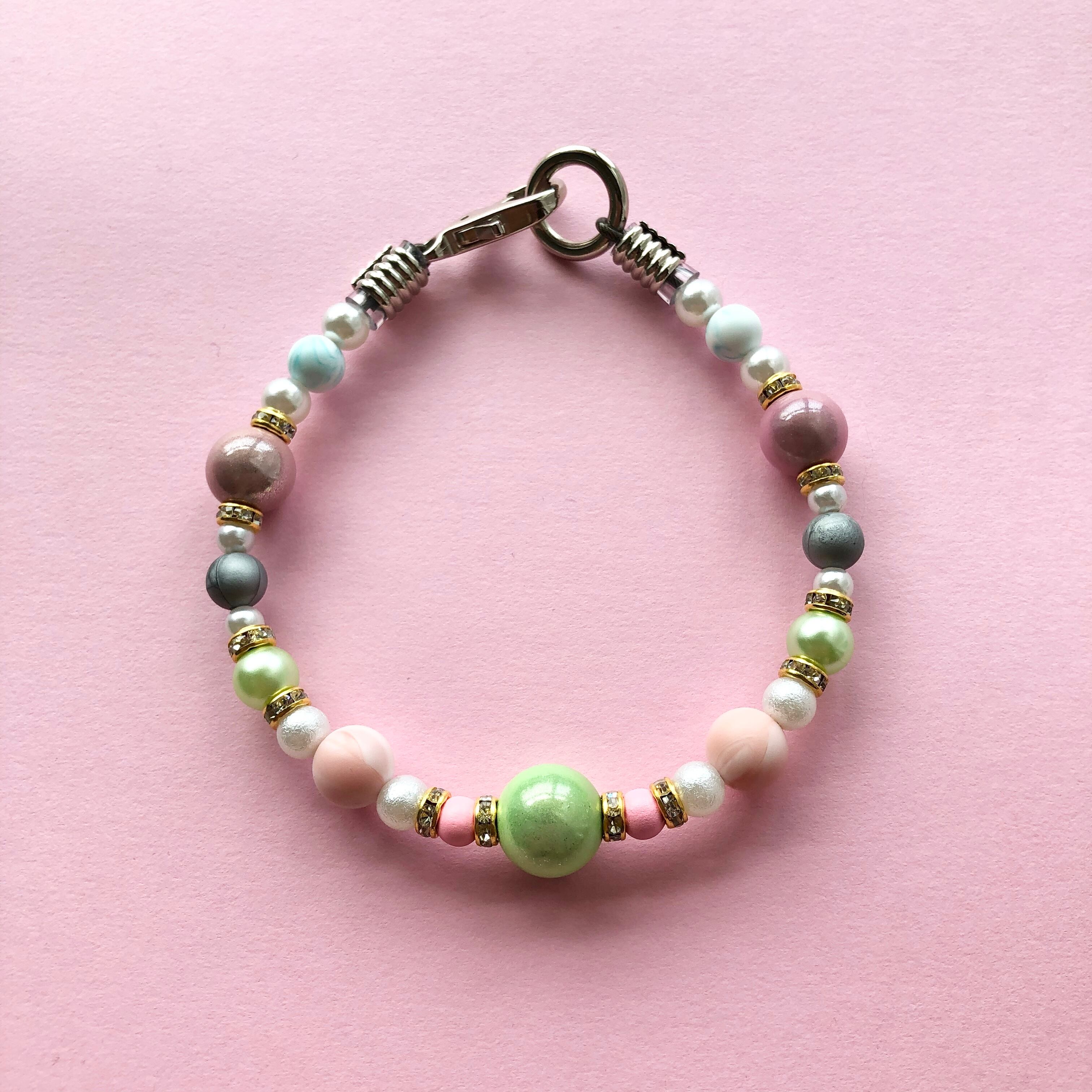 メタリックに輝くビーズとマットな発色のシリコンビーズが、首元をぐんと華やかに盛り上げてくれます。