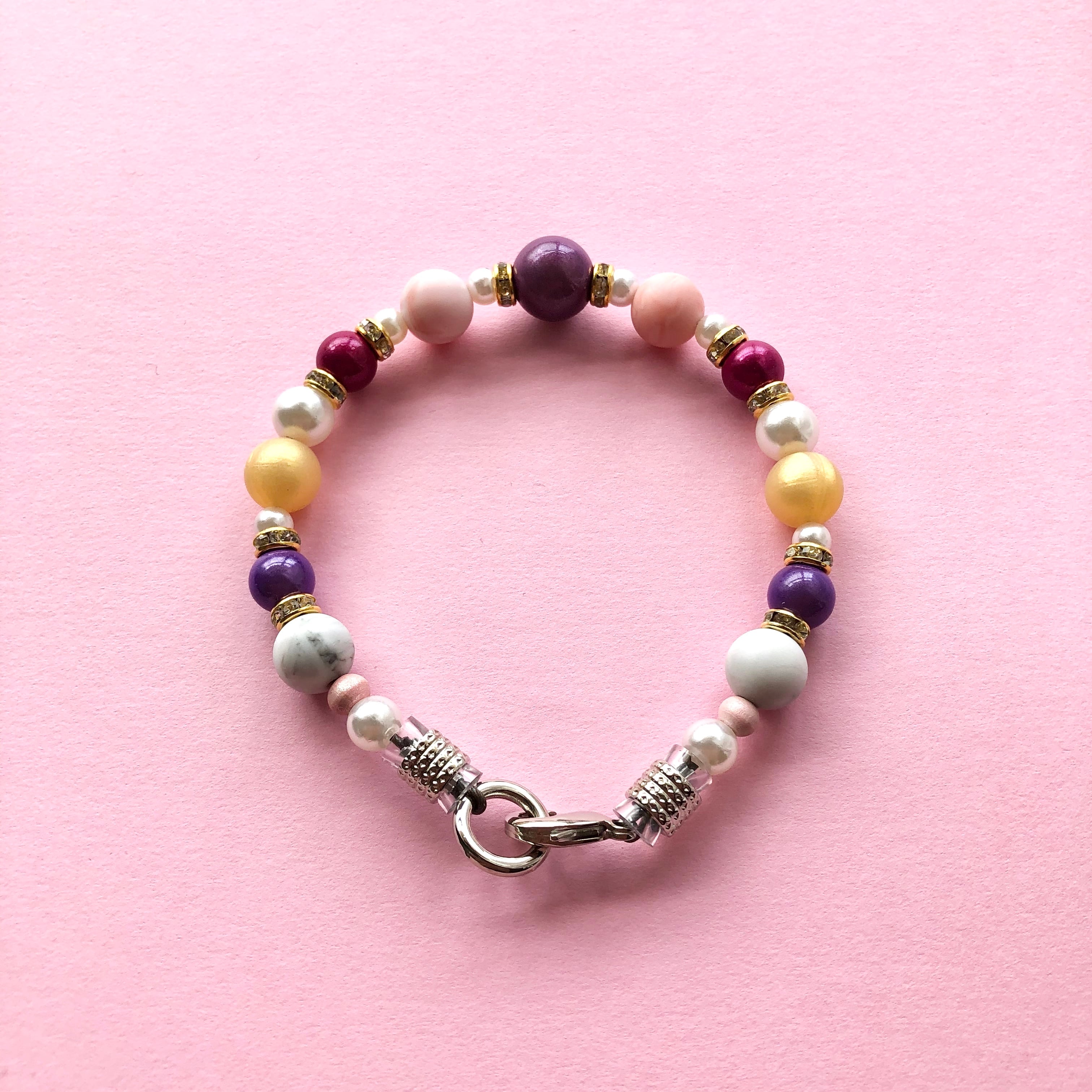メタリックに輝くビーズとマットな発色のシリコンビーズが、首元をぐんと華やかに盛り上げてくれます。